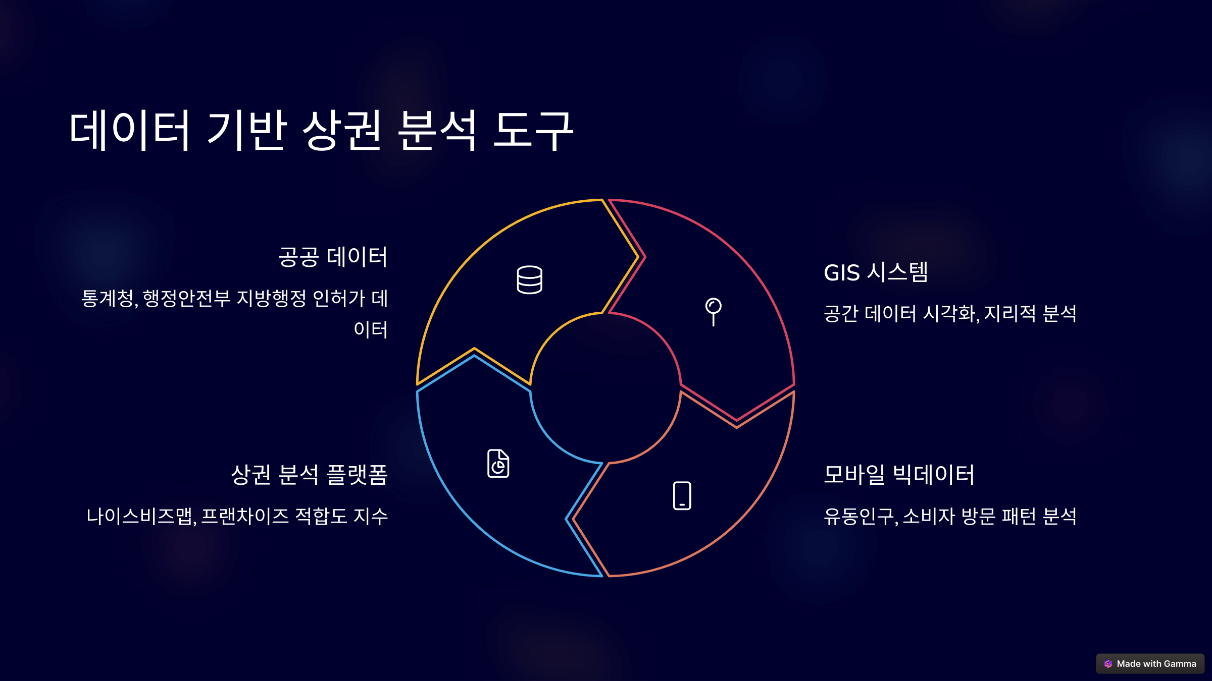프랜차이즈 창업을 준비하면서 가장 중요한 과정 중 하나가 바로 상권 분석이에요. 단순히 유동 인구가 많다고 해서 무조건 좋은 입지는 아니고, 브랜드 특성과 타깃 고객에 맞는 위치를 찾는 것이 핵심이에요. 특히 2025년 현재는 데이터 기반 분석이 기본이 된 시대이기 때문에 감과 경험만으로는 부족하답니다.