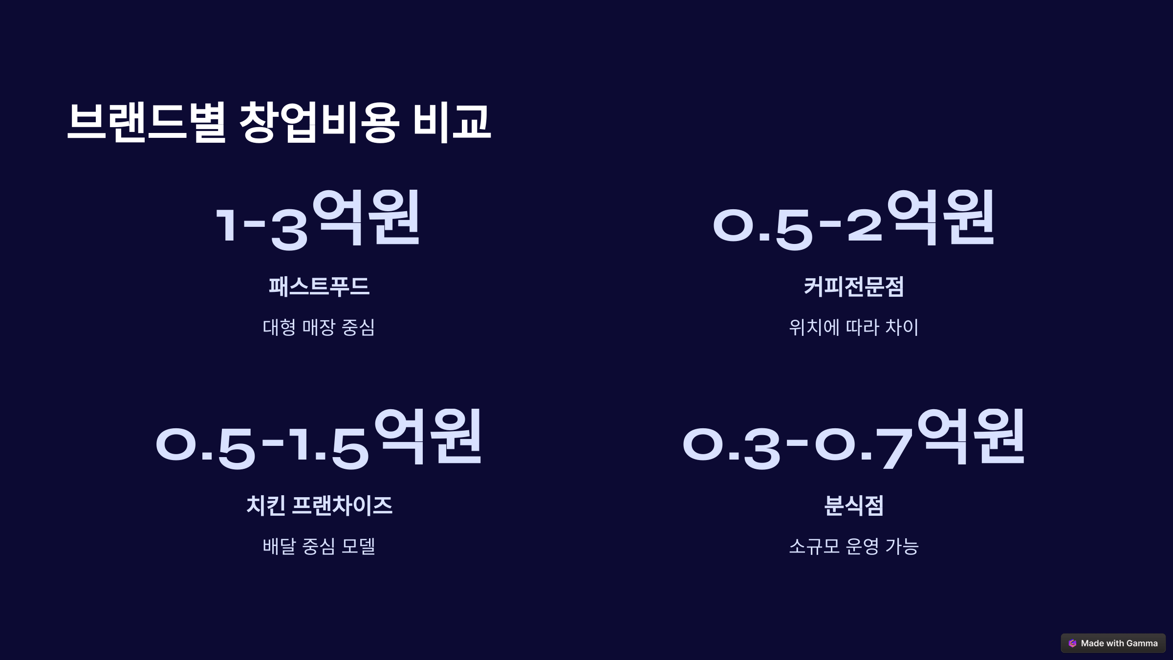브랜드별 창업비용 비교 📊