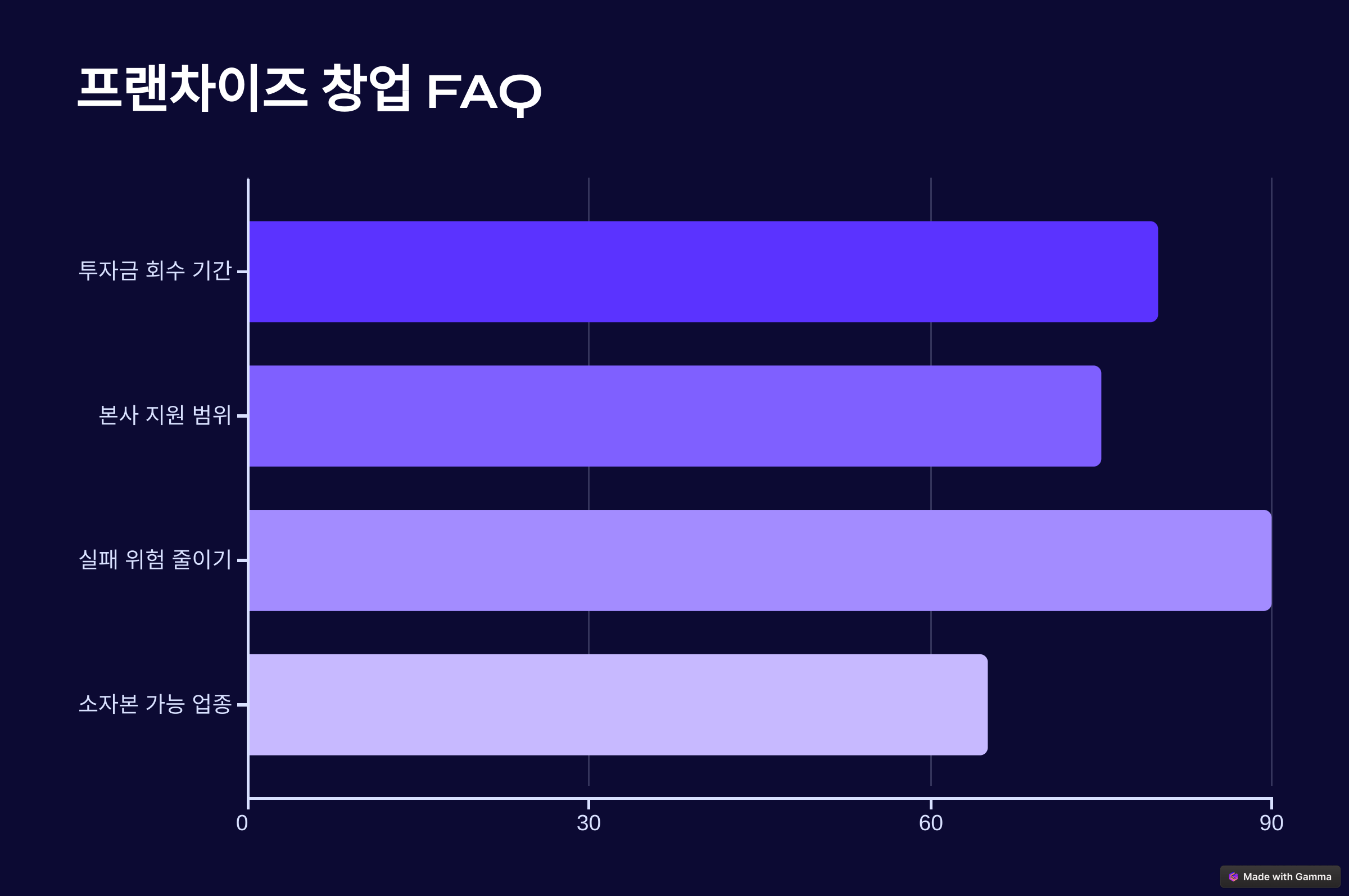 A1. 업종에 따라 다르지만 일반적으로 외식 프랜차이즈는 8천만~1억 5천만 원, 무인매장은 3천만 원 내외로 시작할 수 있어요.