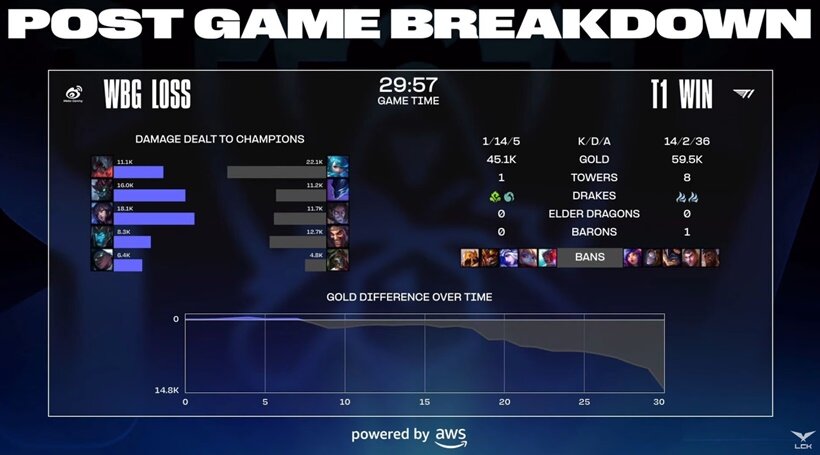 T1 vs WBG 결승 1경기 결과